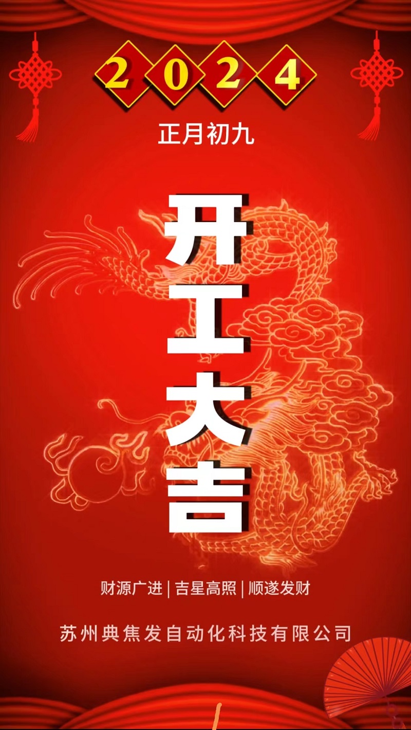 2024年2月18日 农历正月初九 在农历正月初九的2024年2月18日,苏州典焦发自动化科技有限公司迎来了开工的大吉日。